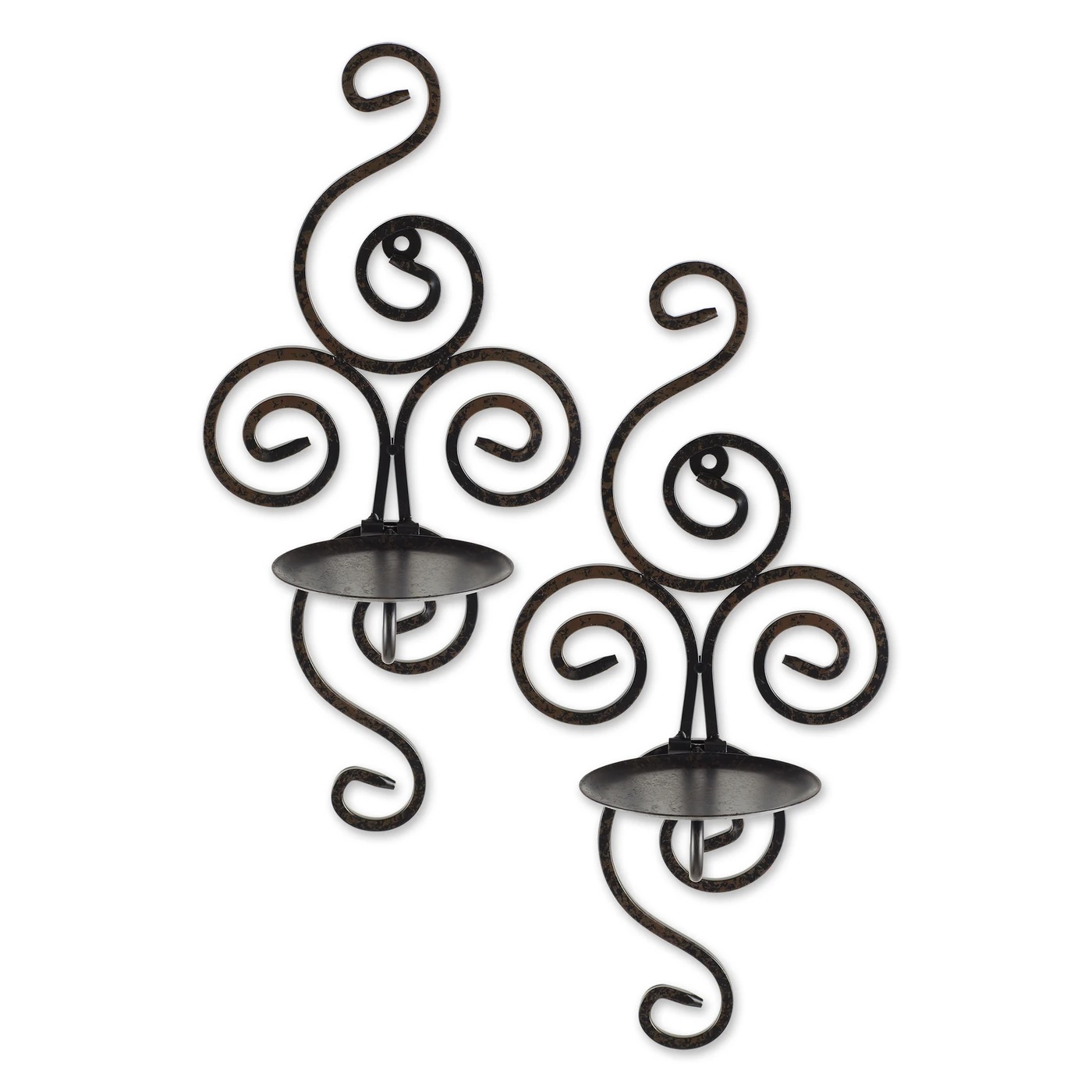• Wrought-iron wall sconces feature a hypnotic 'twirl' design that perfectly compliments the flickering candlelight.